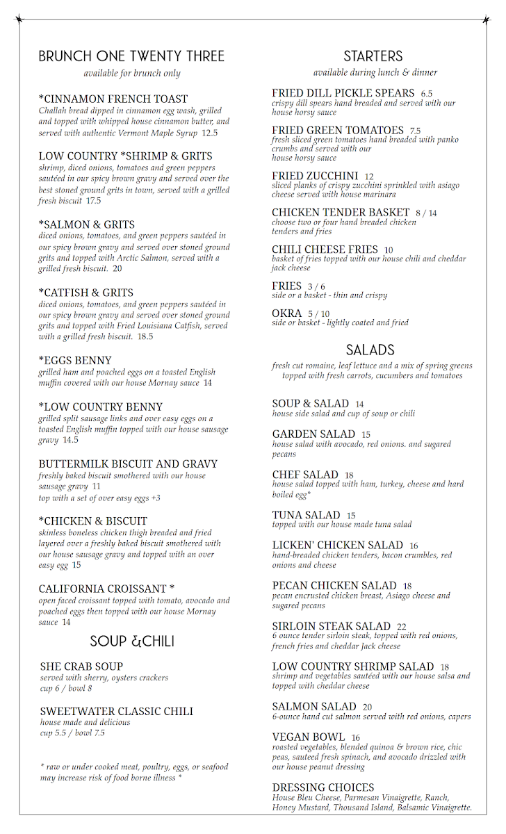 Welcome to Sweetwater One Twenty Three, a delightful dining experience nestled in the heart of Summerville, SC. A must-visit for anyone craving an inviting atmosphere and a diverse menu that celebrates southern comfort food with a twist.